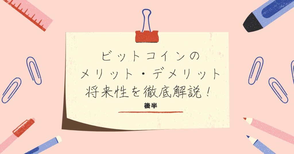 前半の振り返り この記事の前半では、ビットコインが生まれた背景や仕組みについて詳しく説明しました。ビットコインは、中央管理者がいないお金として、ブロックチェーン技術とマイニングの仕組みで安全性を保ちながら運用されています。 後半では、ビッ...